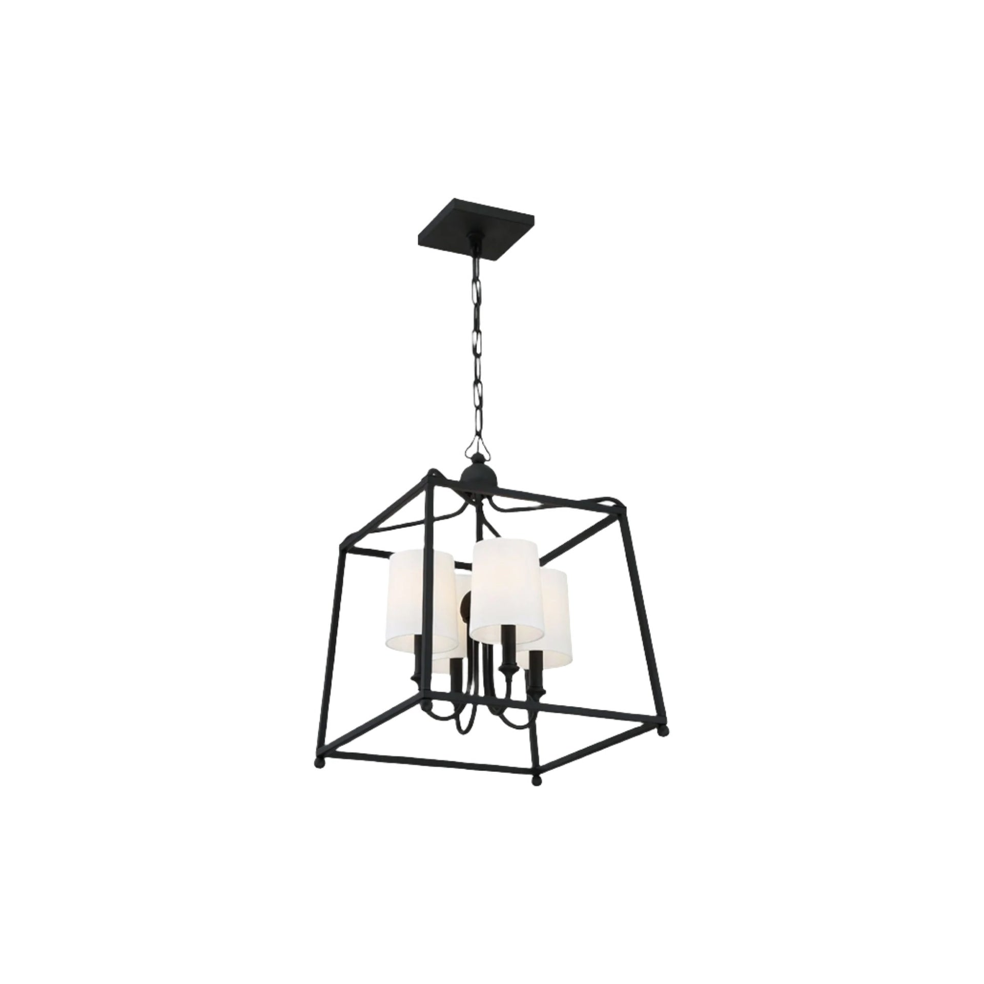 Elevate your space with the Sylvan Cage Chandelier, showcasing a modern geometric silhouette with a luxurious touch. Featuring a black forged finish and ivory silk shades, this 4-light chandelier is dimmable, making it perfect for creating the right ambiance. Its compatibility with sloped ceilings and a clean, transitional design blends effortlessly into various interior styles.