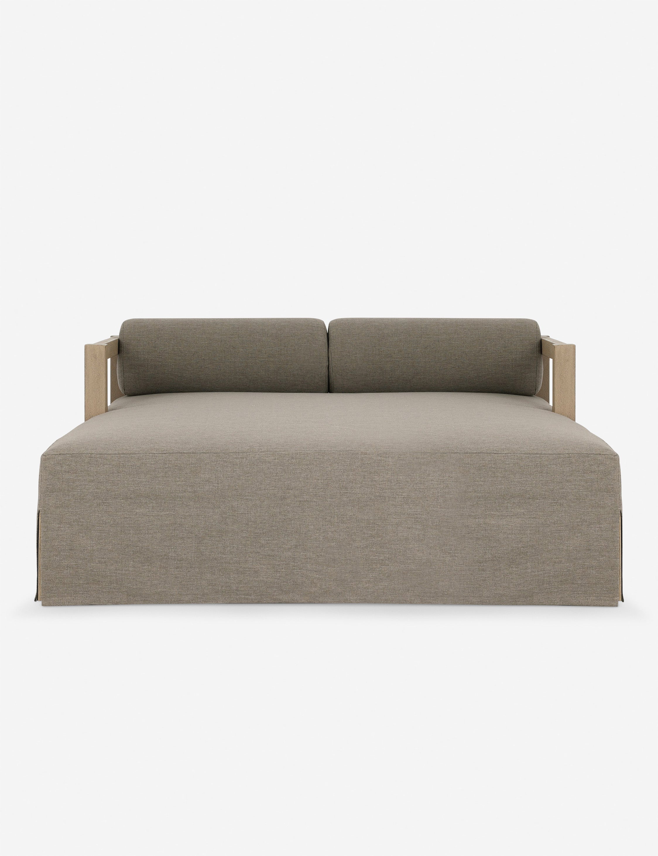 Gray Teak and Linen Outdoor Daybed with Bolster Cushions
