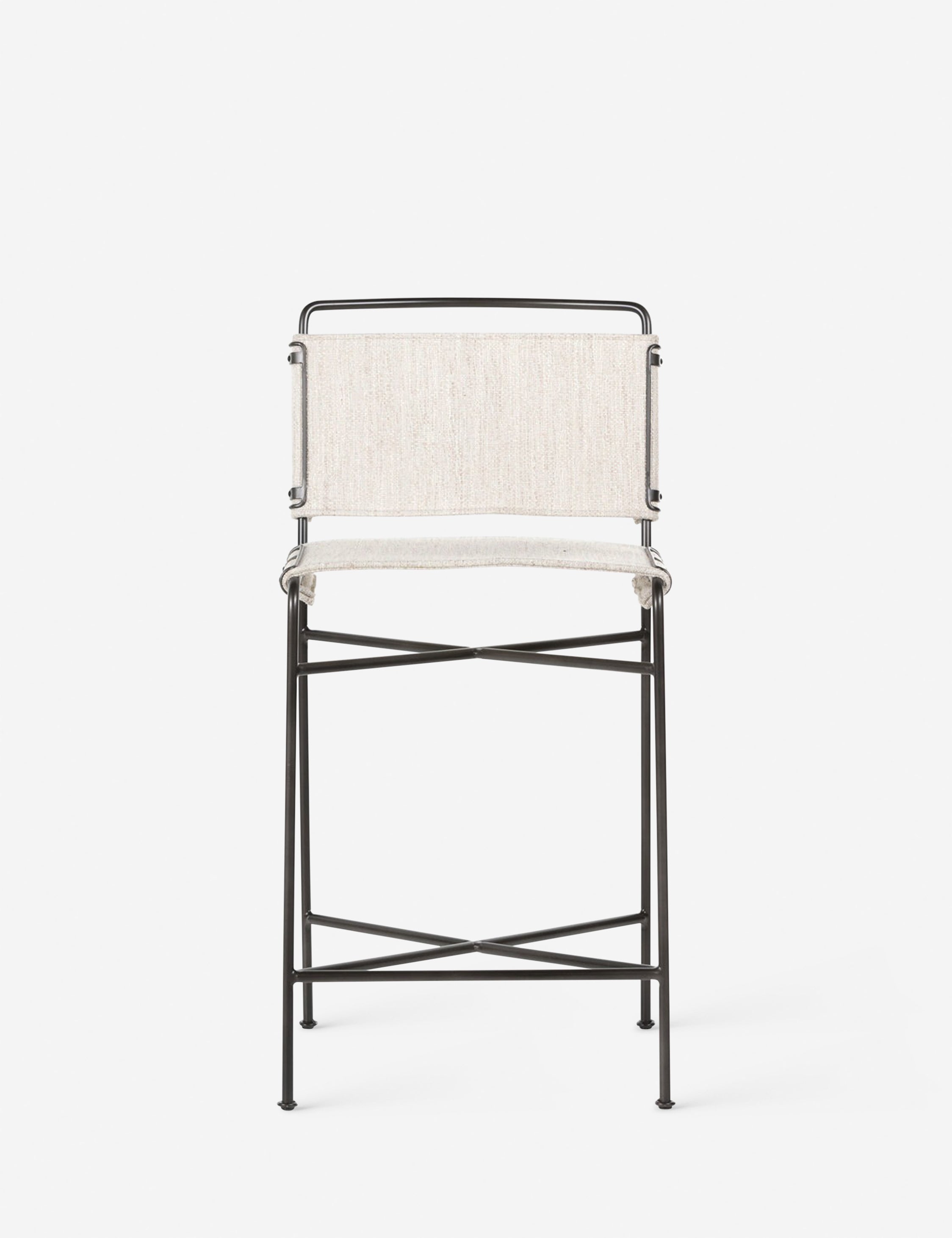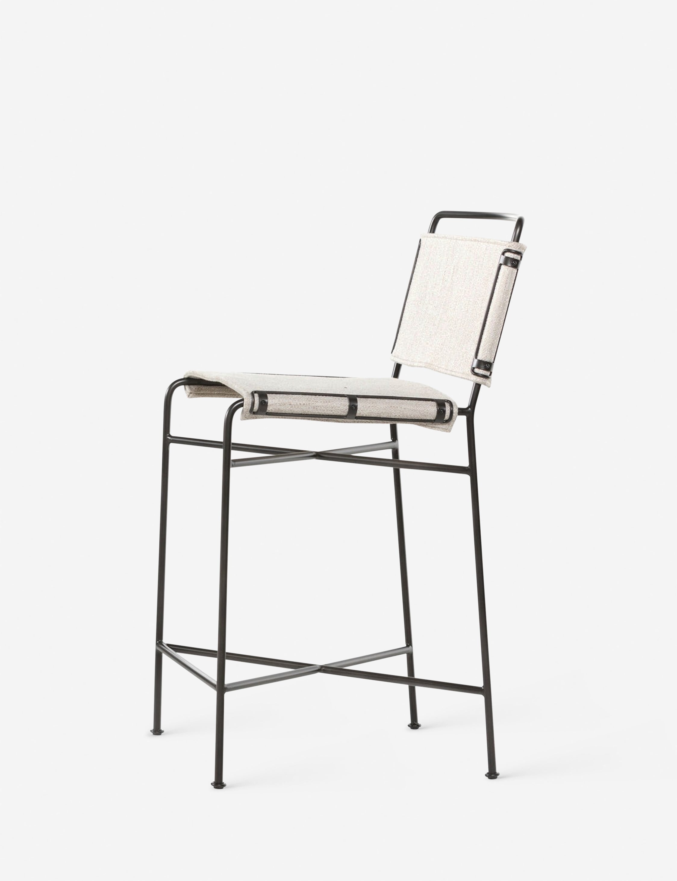 Experience sleek comfort with this counter stool. Featuring a waxed black iron frame and off-white cotton seat, it combines modern design with industrial flair. The performance fabric ensures durability against spills and stains, perfect for high-traffic areas.