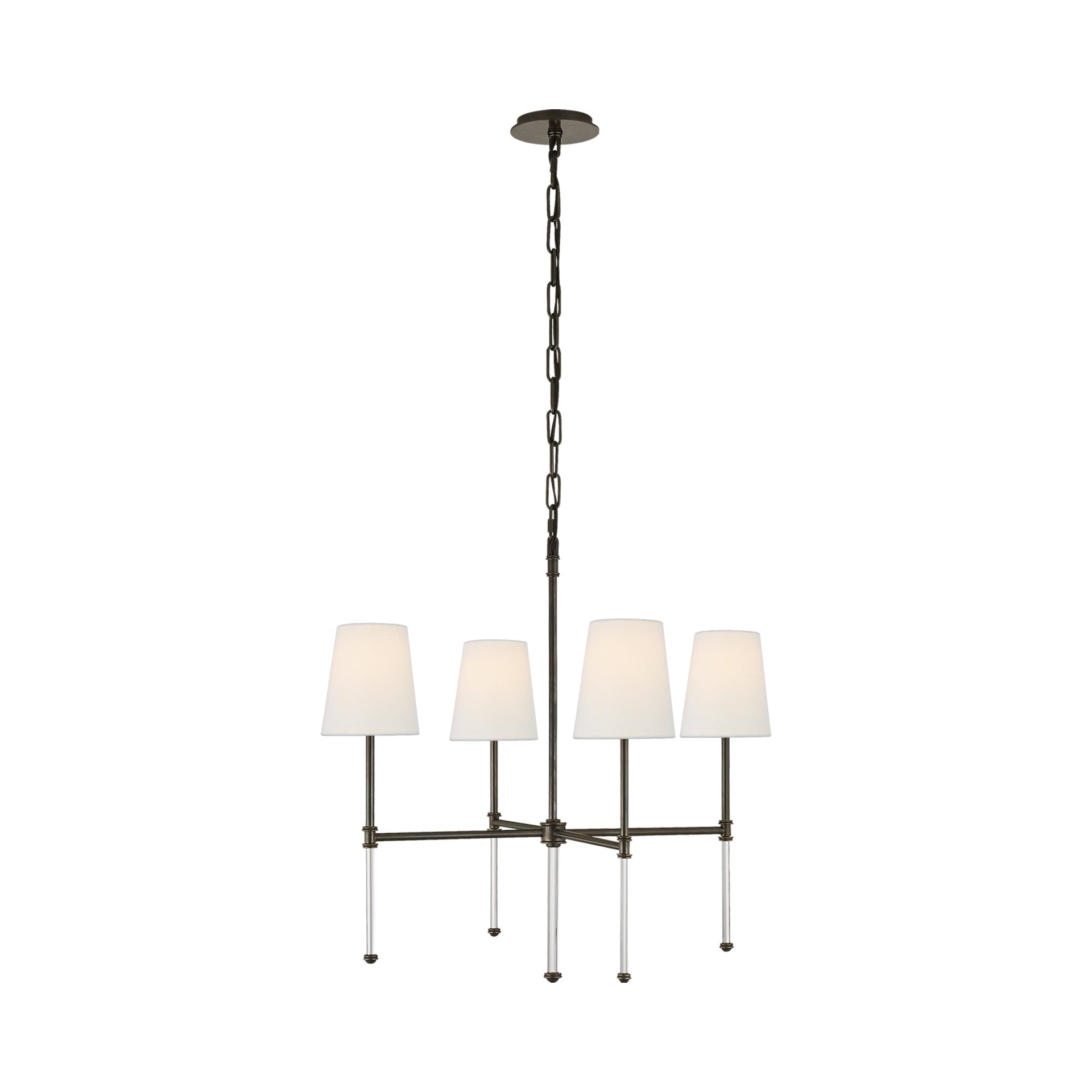 Ansel 25" Chandelier, Oil-Rubbed Bronze - White Fabric Pleated Shades - 33" Length