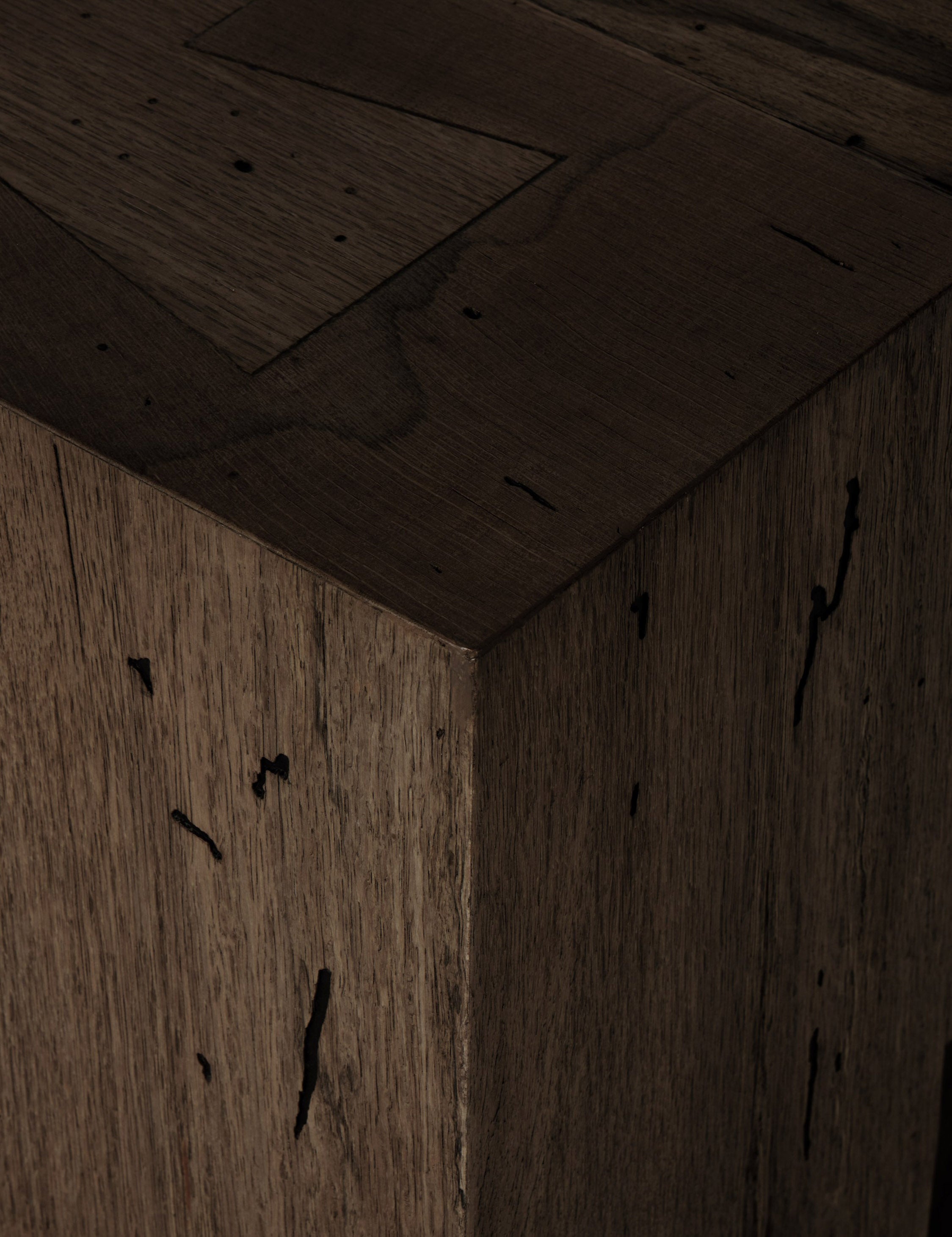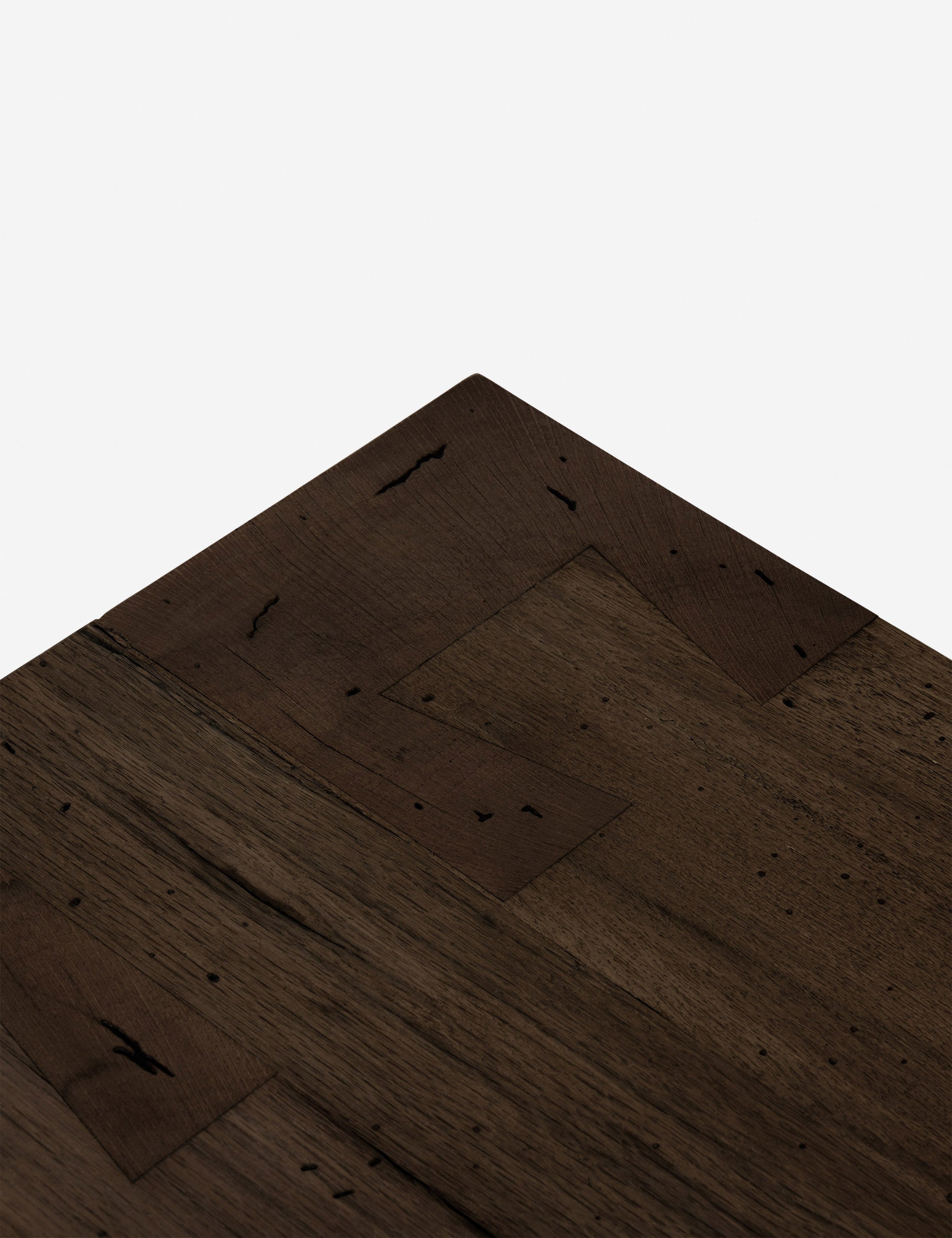 This dining bench features chunky legs and dovetail joinery for a rustic appeal. The distressed oak veneer creates a wormwood-like texture, adding endless character. Perfect for an industrial feel at your table or a flexible accent for a farmhouse setting.