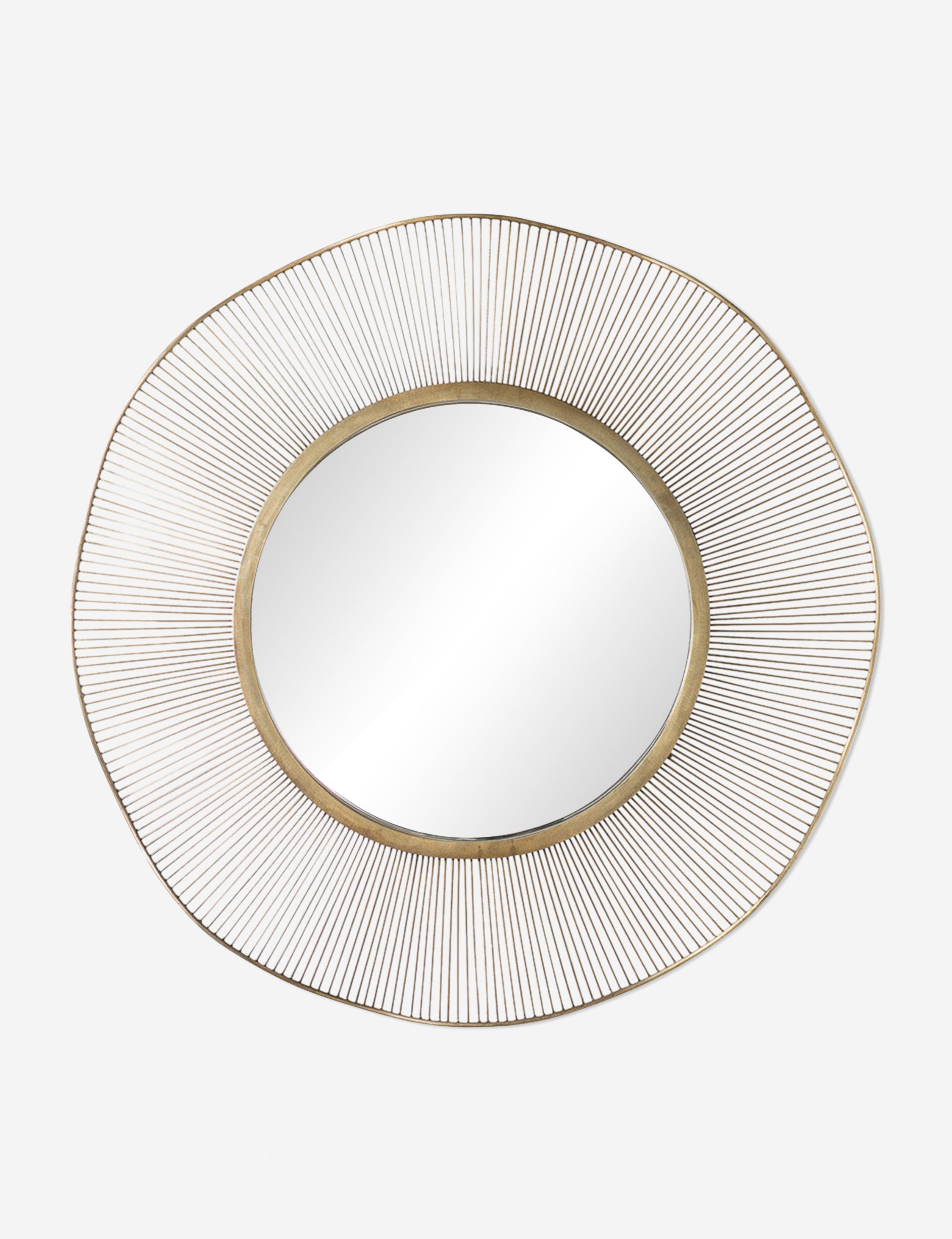 Elevate your space with this exquisite round mirror, featuring an elegant wavy wire frame in an antique brass finish. The beveled edge adds a touch of sophistication, making it a perfect addition to your entryway or living area. Its unique design combines traditional charm with a hint of luxury, ensuring it becomes a focal point in any room.