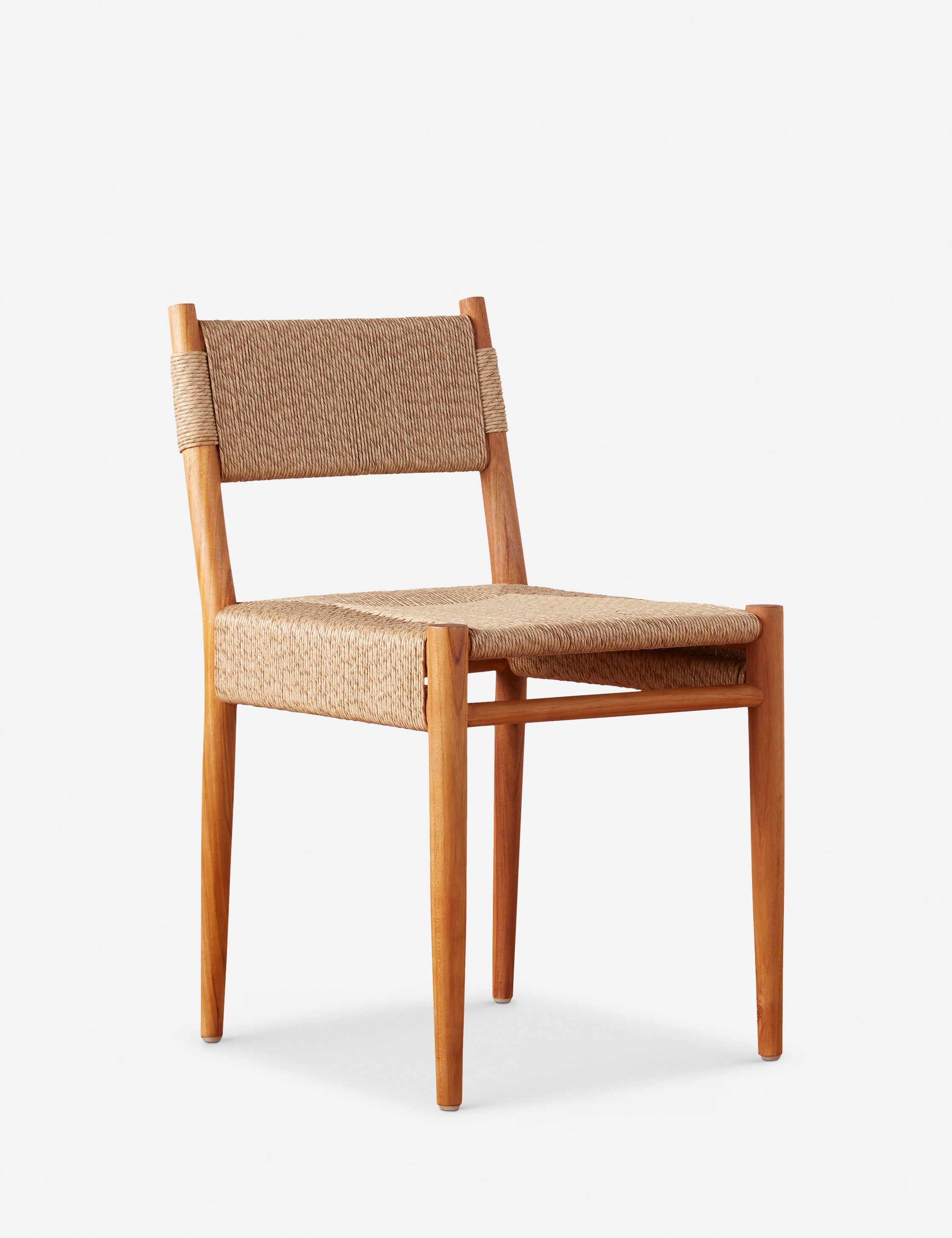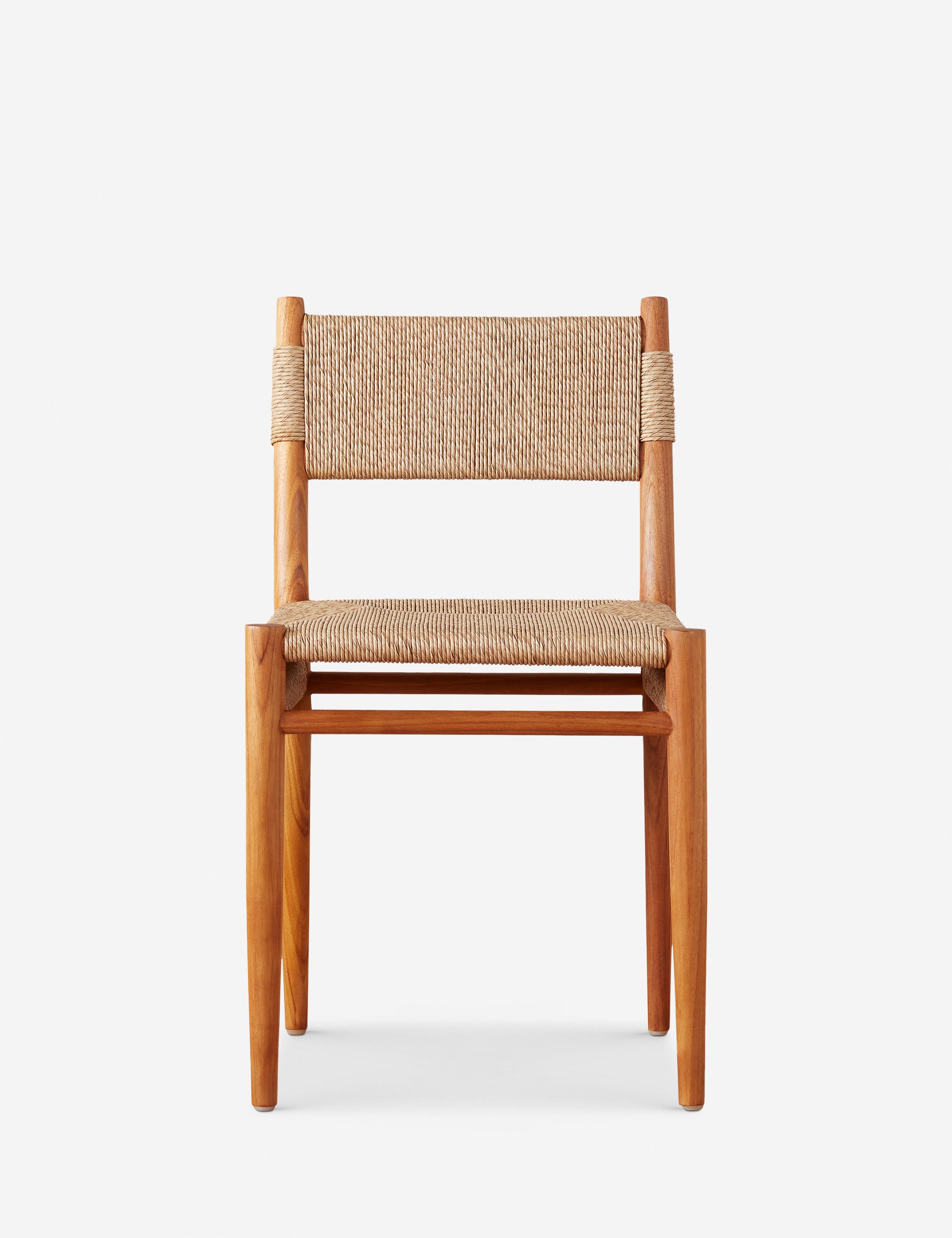 Elevate your dining experience with this armless dining chair, featuring a sleek teak frame and a woven rush seat. Perfect for both indoor and outdoor settings, its minimalist design and durable materials ensure lasting elegance and comfort.
