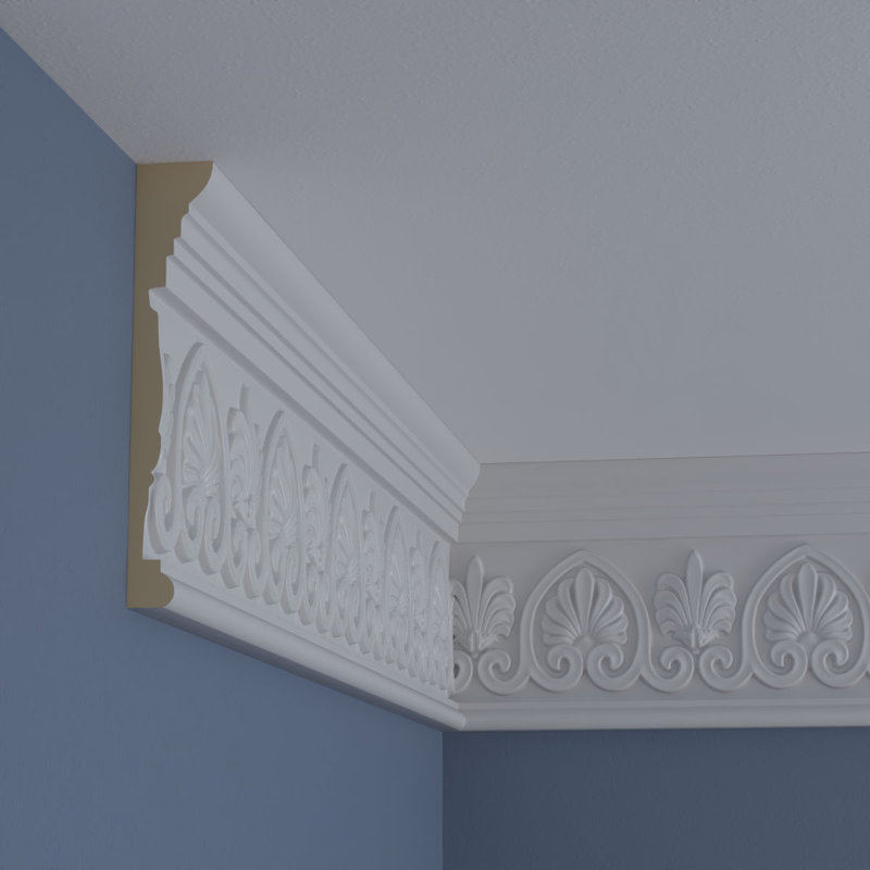 Emery Scrolled Palmelle White Polyurethane Crown Moulding
