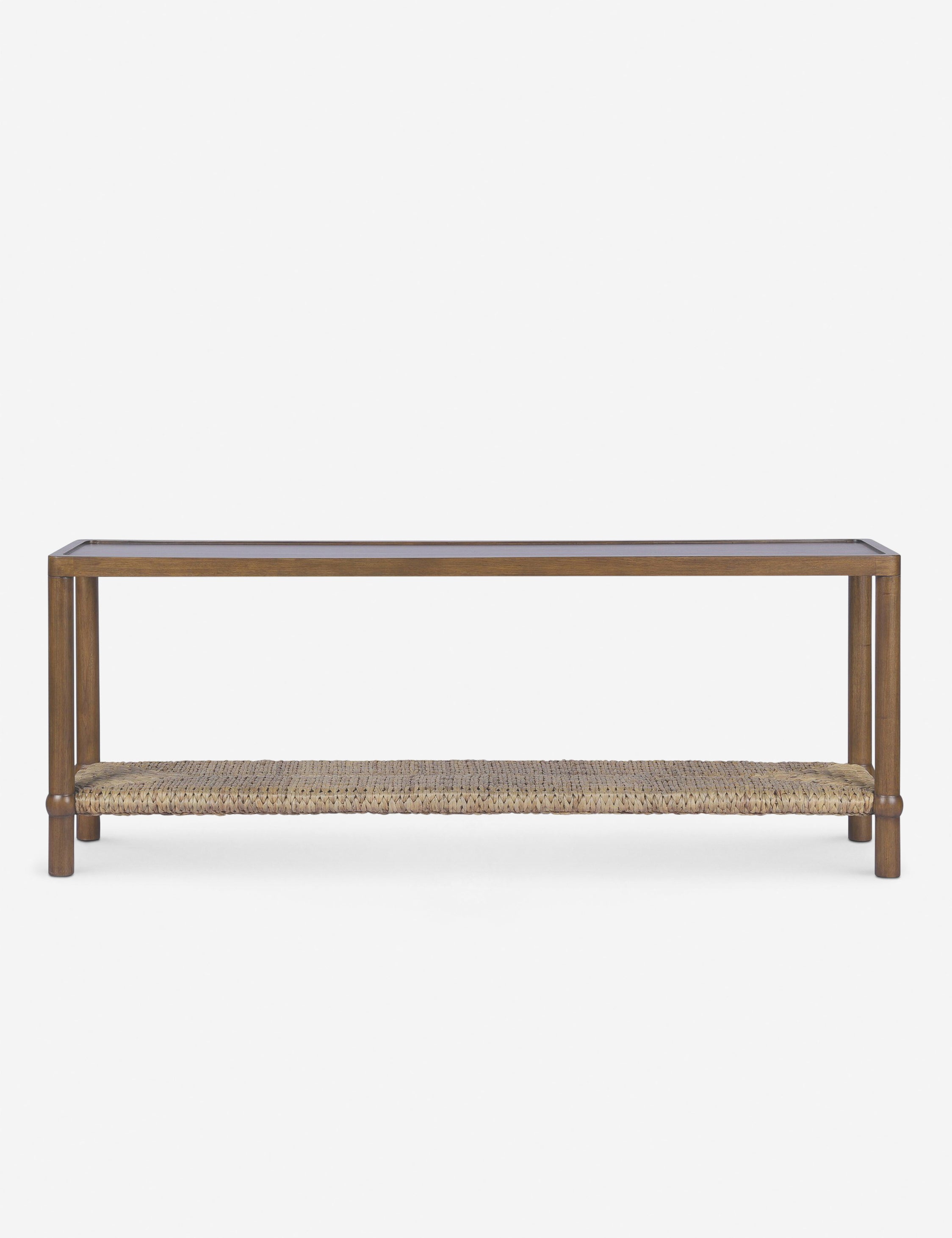 Brown Wood and Metal Console Table with Woven Shelf