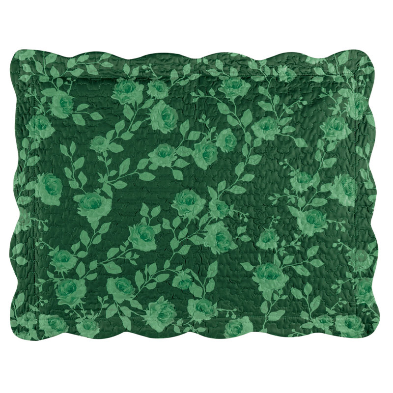 Enhance your bedroom decor with this charming green floral pillow sham. Featuring a scalloped edge and soft polyester fabric, it offers both style and comfort. Easy to slide your pillow into and machine washable for convenience.