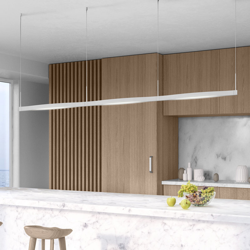 Illuminate your kitchen island with the sleek Sonneman Ola pendant. Featuring a minimalist design with three LED lights, this pendant offers even, energy-efficient lighting. Its satin white finish complements any decor style, making it a versatile choice for modern homes.