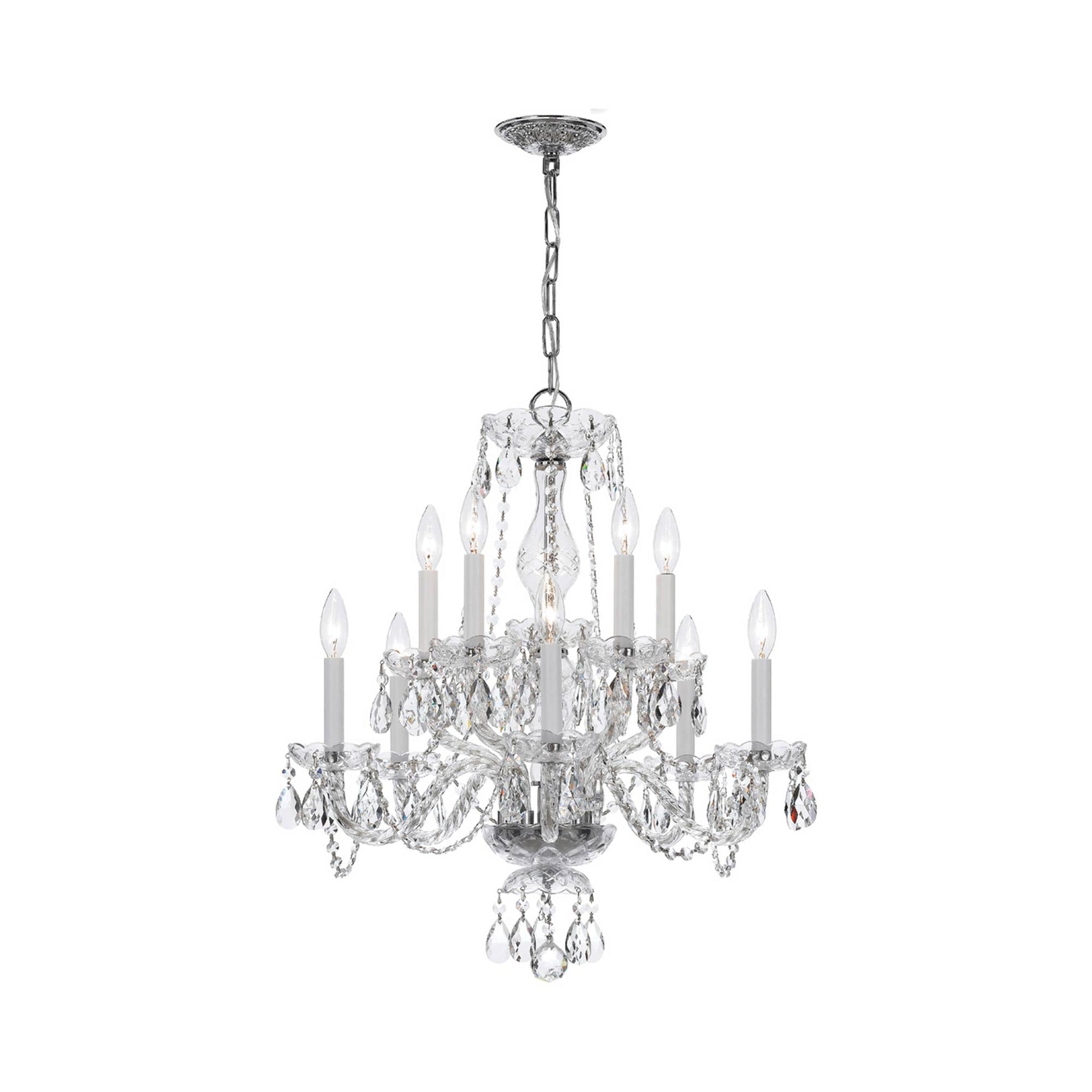 Elevate your space with this stunning 10-light chandelier. Featuring polished chrome and clear Swarovski crystals, it adds a touch of luxury and elegance to any room. Perfect for traditional and luxurious interiors.