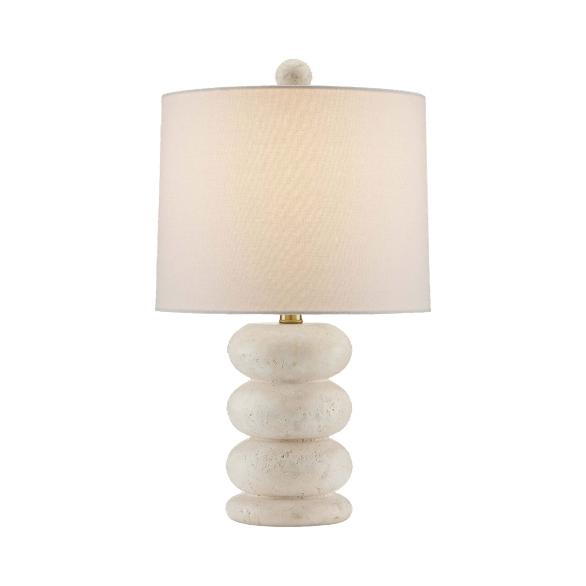 Elevate your decor with this elegant table lamp featuring a timeless travertine base and bone linen shade. Its sculptural design and neutral colors blend effortlessly into modern and transitional spaces, adding a warm and inviting atmosphere.
