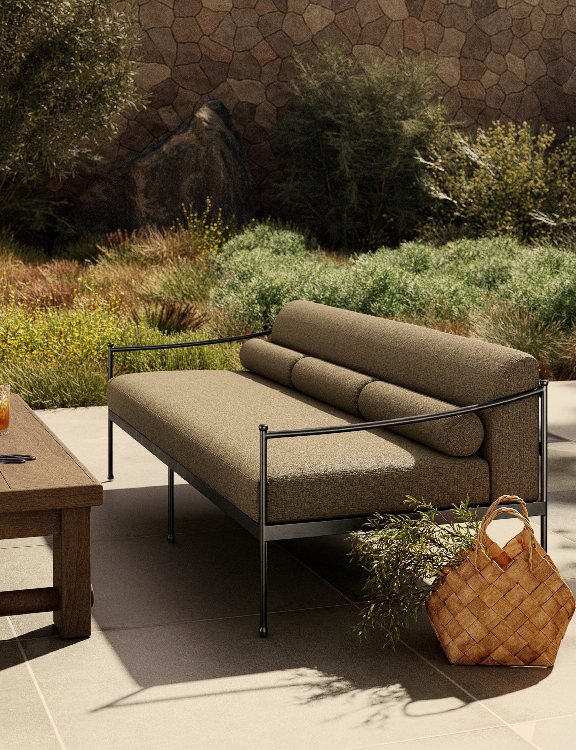 Greige Woven Aluminum Outdoor Couch with Black Finish