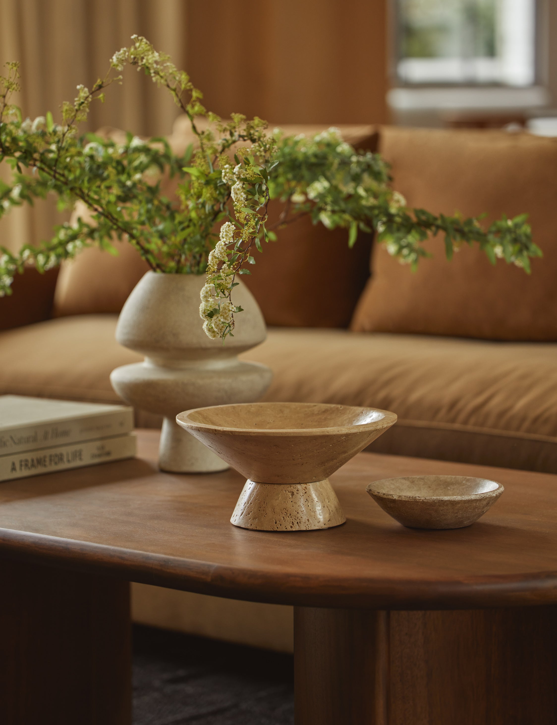 Elevate your space with this Antiqued White Marble Desk Bowl, featuring a unique vintage patina. Perfect for adding a touch of timeless elegance to any desk or vanity, its earthy texture and gently weathered look bring a distinct character and charm.