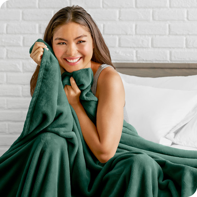 Forest Green Microplush Fleece Reversible Throw Blanket