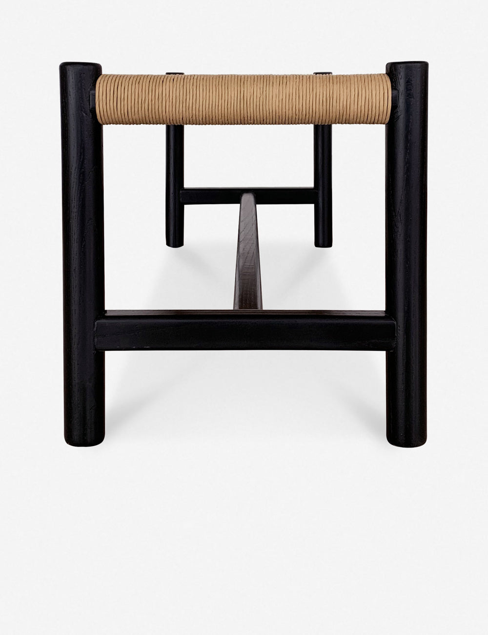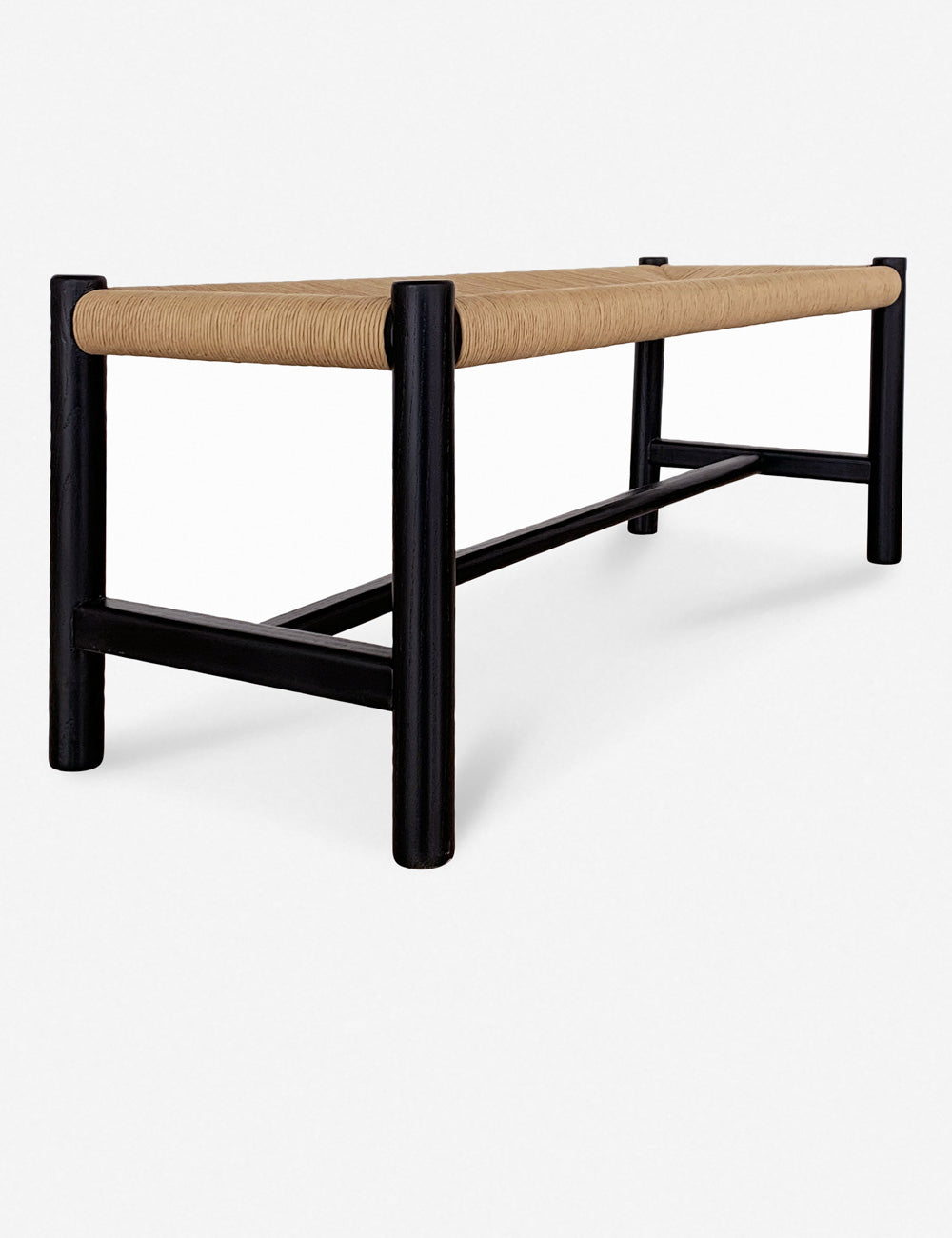 Elmwood Black 60" Artisanal Woven Bench with Natural Fiber Seat