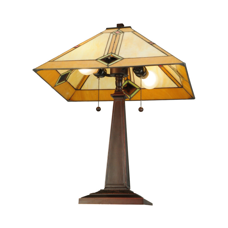Tiffany Style Mission Double Lit 2+1-Light Dark Bronze Table Lamp - Multi-Color