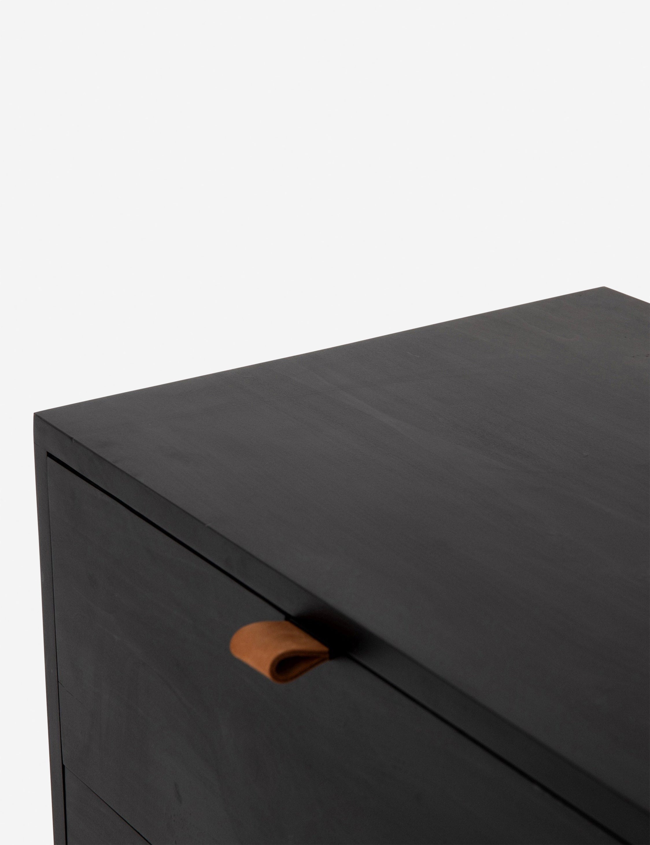 Mid-Century Modern Black 7-Drawer Dresser with Leather Pulls