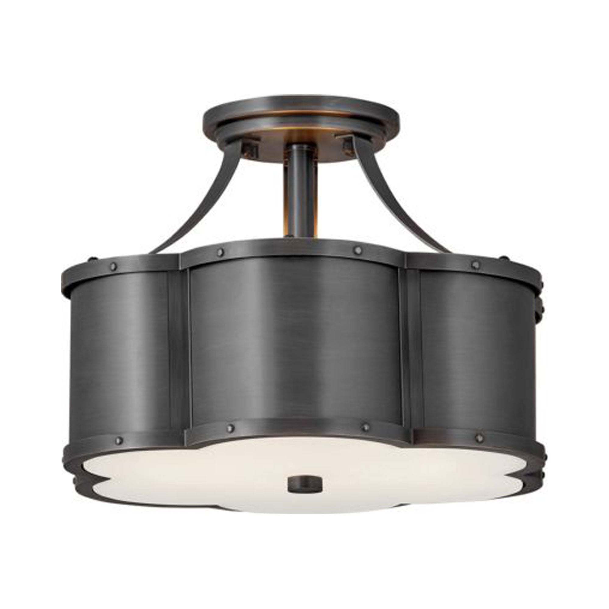 Heritage Brass and Glass 3-Light Semi-Flush Mount