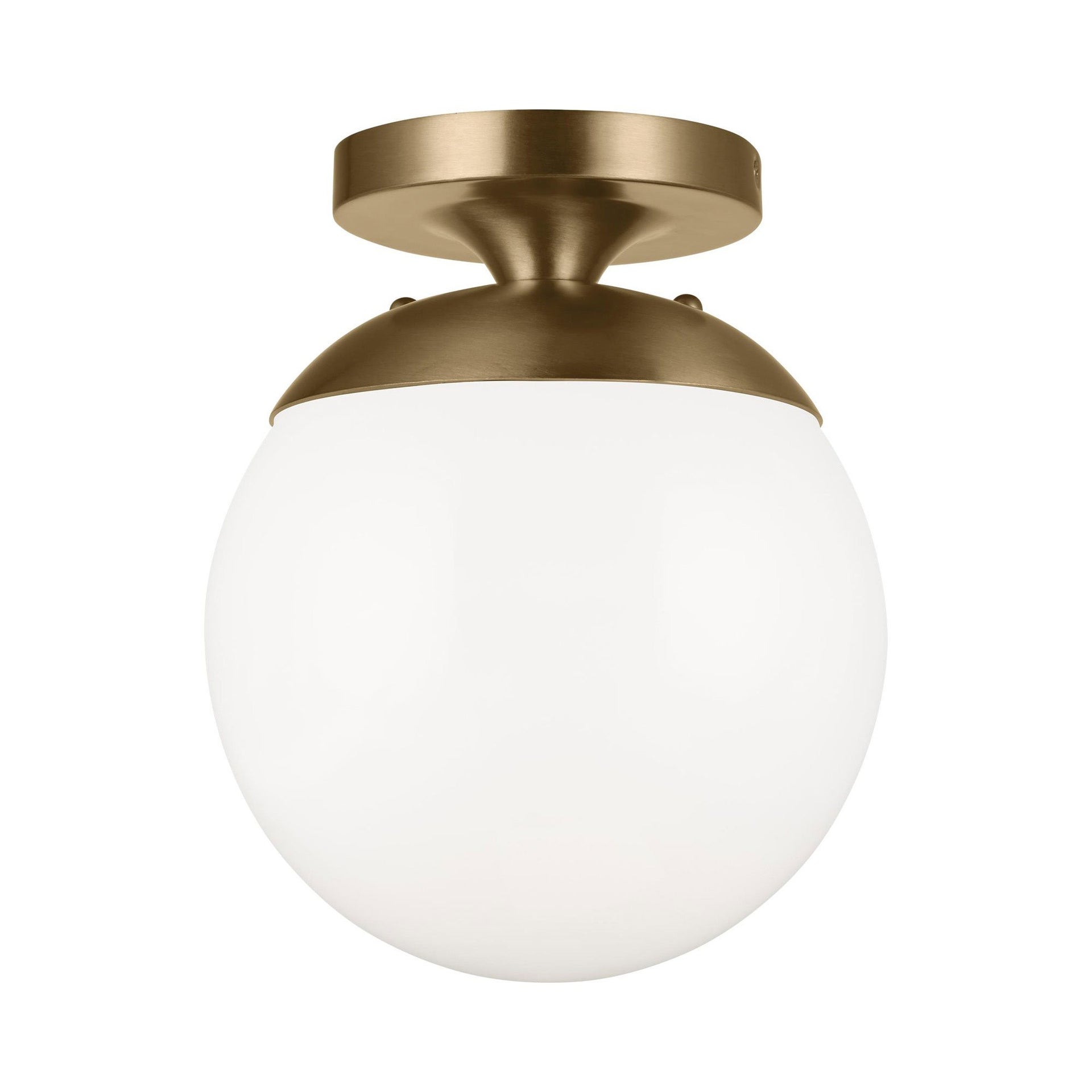 Satin Brass Globe Semi-Flush Mount Light with White Glass