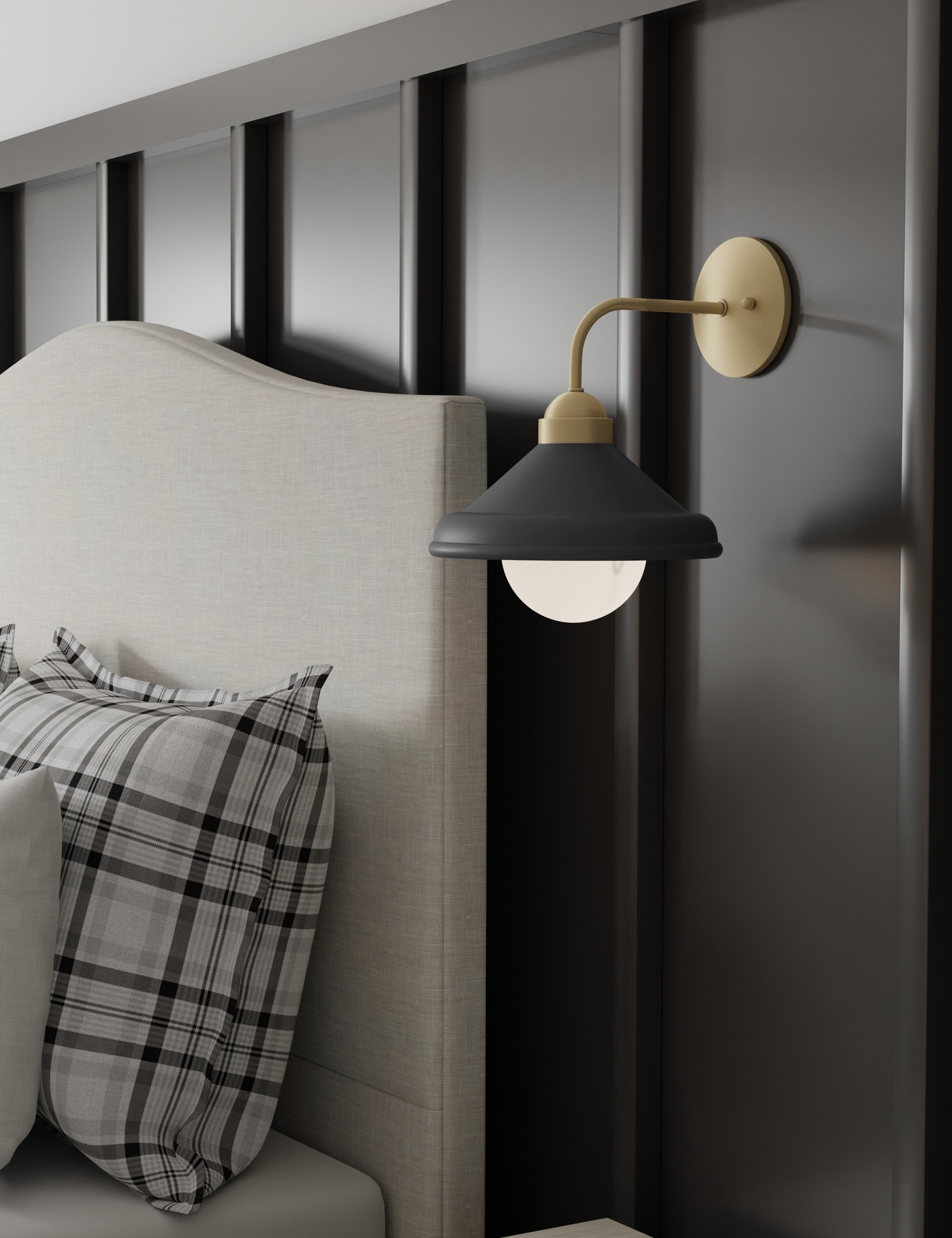 Matte Black and Gold Leaf Dimmable Wall Sconce