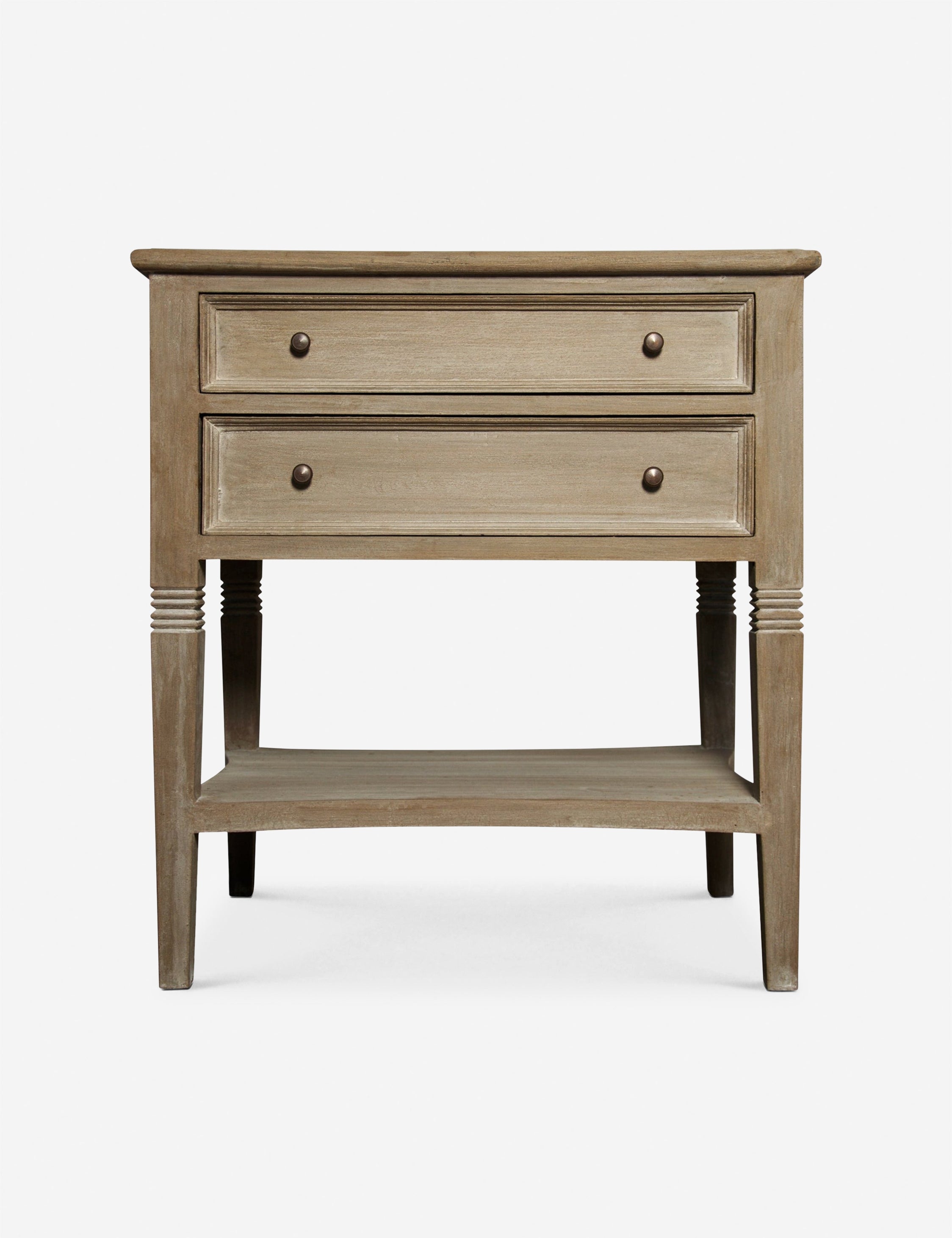 Colonial-Inspired Weathered 2-Drawer Nightstand with Carved Legs